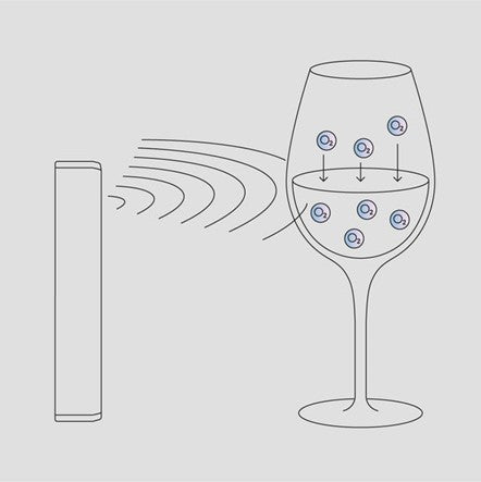 Esto lo logra enviando ondas electromagnéticas a la superficie del vino.